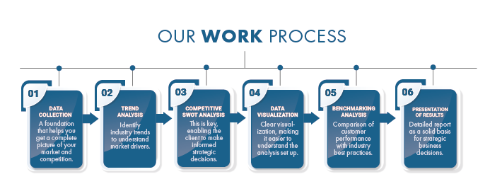 Our approach to market and competitive analysis focuses on transparency and meticulousness. We work in a six-step process that is structured to provide a complete picture of the business environment.